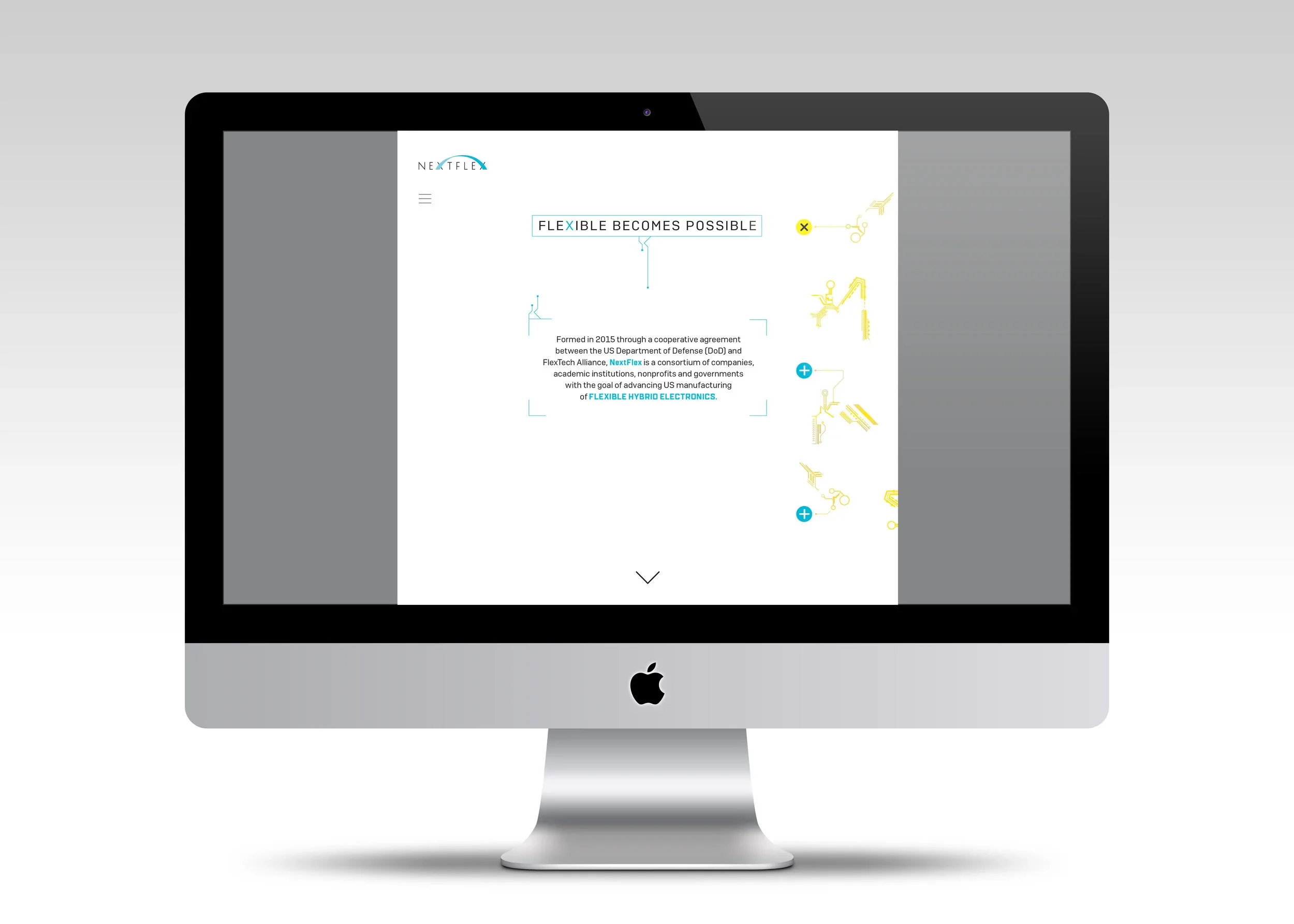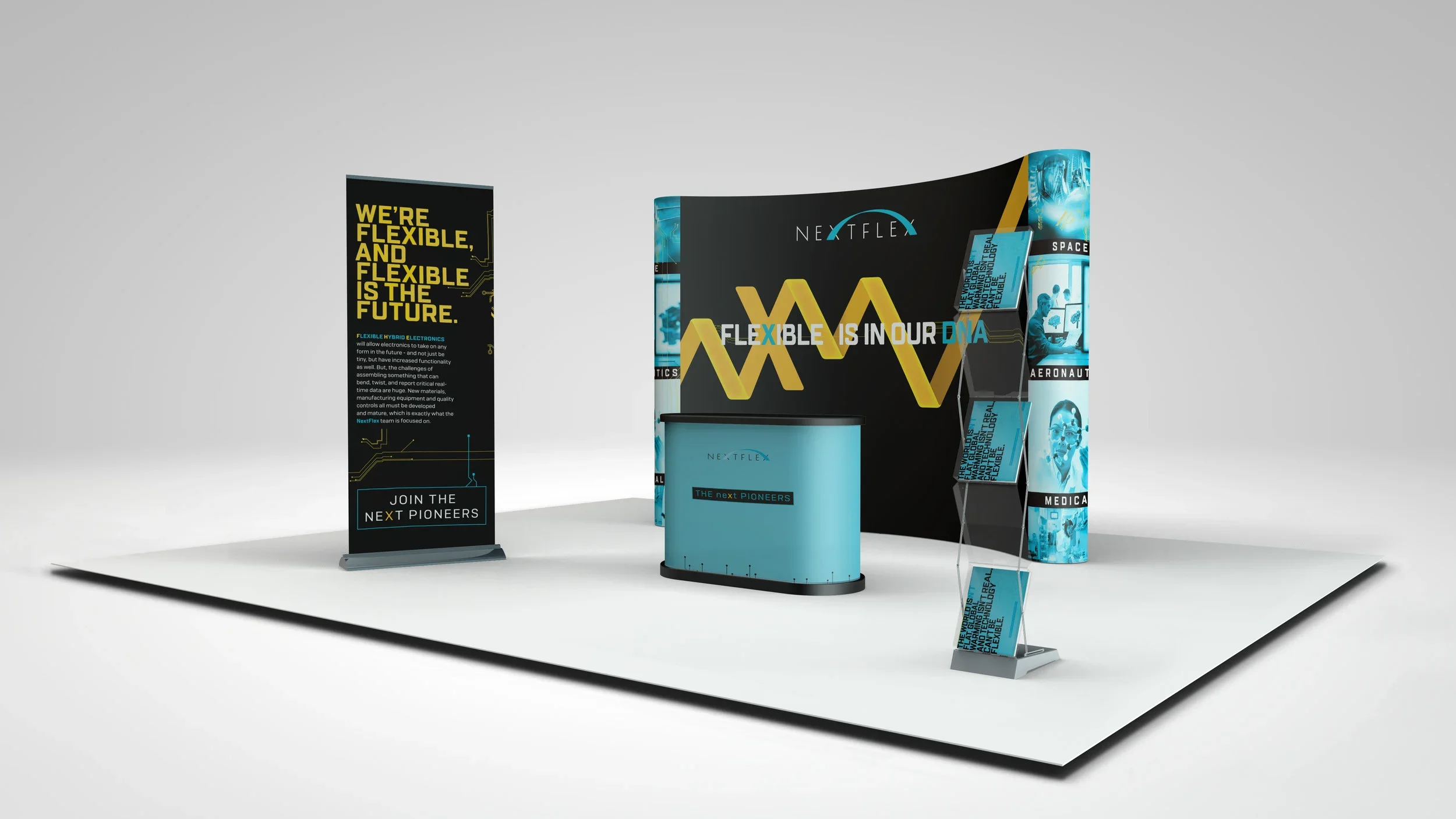 Led a conceptual rebrand as Senior Art Director for NextFlex, the flexible hybrid electronics consortium. The project included modernized layouts and visual assets designed to reflect innovation and strategic industry positioning.